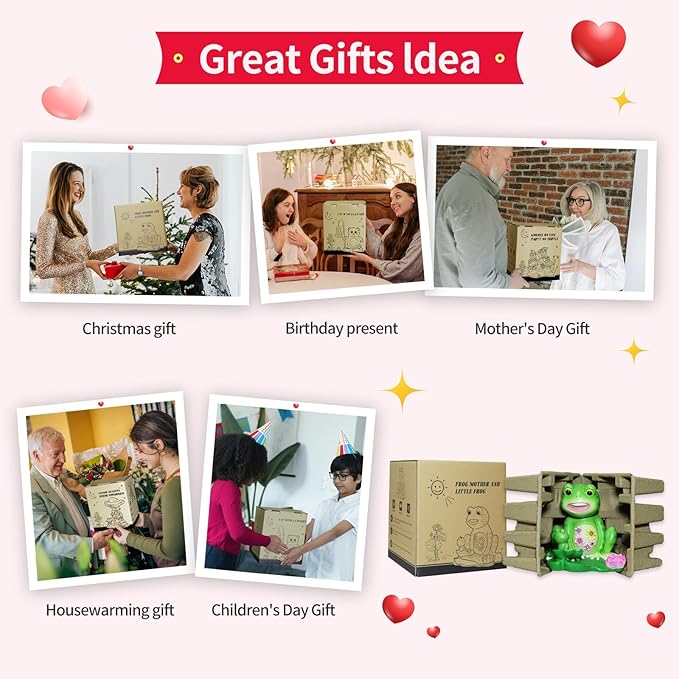 - Perfect Gift for Any Occasion: The uniquely designed solar powered "Frog Mother And Little Frog" statue is not only the best gift for birthdays, Christmas, Mother's Day, Father's Day, New Year, Thanksgiving, Easter, Valentine's Day, but also the best gift for any occasion. It can be given to frog enthusiasts, gardening enthusiasts, lovers, husbands, wives, mothers, fathers, sons, and daughters.