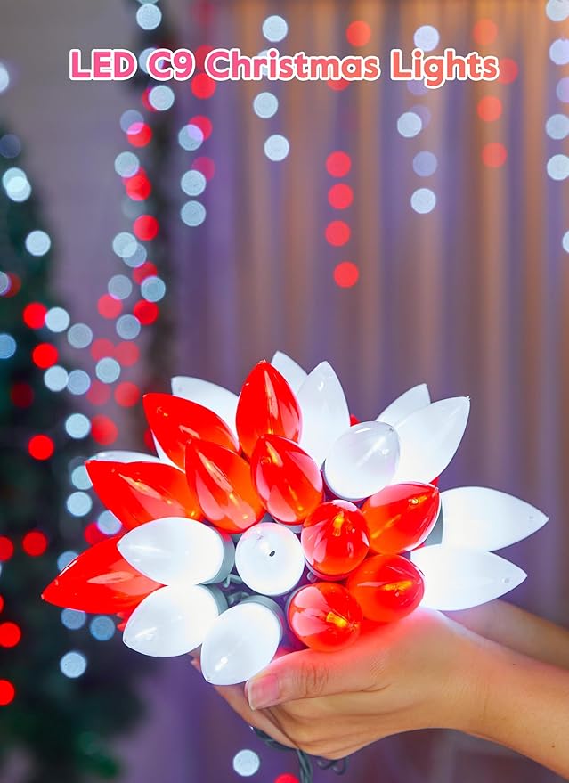 - 【 Connectable Up to 33 Sets 】- You can connect up to 33 sets of these C9 LED Christmas string lights end to end, providing convenience for decorating large areas or substantial outdoor objects such as rooflines or oversized trees