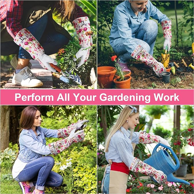 - Rose Gloves Gardening Thorn Proof:Our garden gloves are carefully double thread sewn, with soft palm and reinforced fingertip provide additional wear-resistant protection. The elastic wrists that can be fixed the long gardening gloves, preventing them from slipping and providing a perfect fit. The extended adjustable cuffs protect the forearm from cuts and scratches.