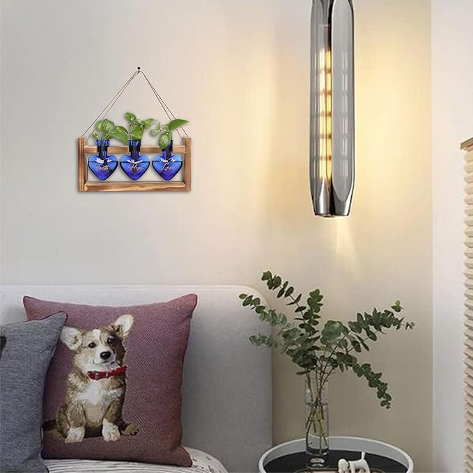 Plant Terrarium Propagation Stations Faith Hope Love Hydroponics Home Garden Decoration Gift for Women with Wooden Stand Heart Shaped Colored Glass Vase