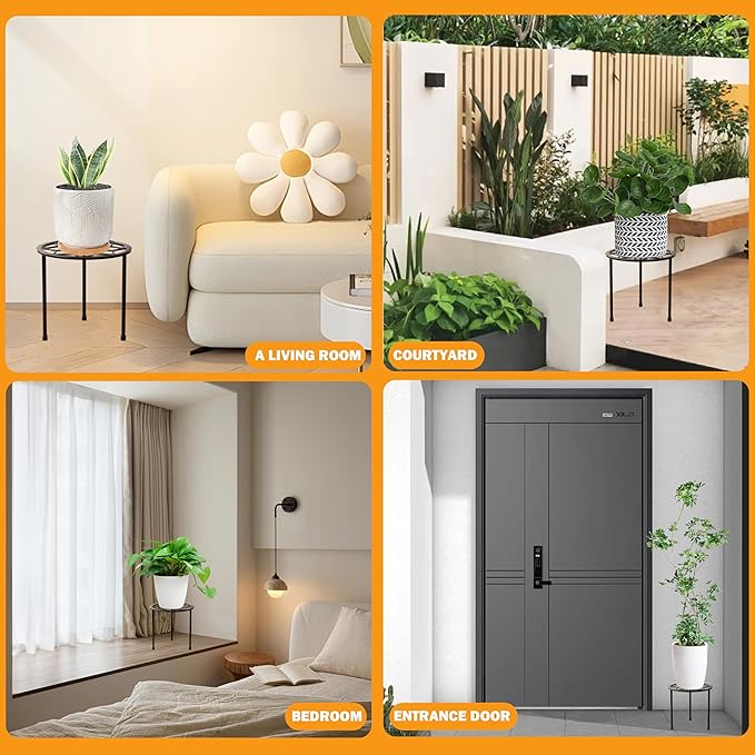 Metal Plant Stand Indoor Outdoor,Indoor Plant Stands for Patio Rust Proof,Heavy Duty Flower Pot Stands for Multiple Plant,Black Potted Plant Holder for Garden Home (5 Pack Black)