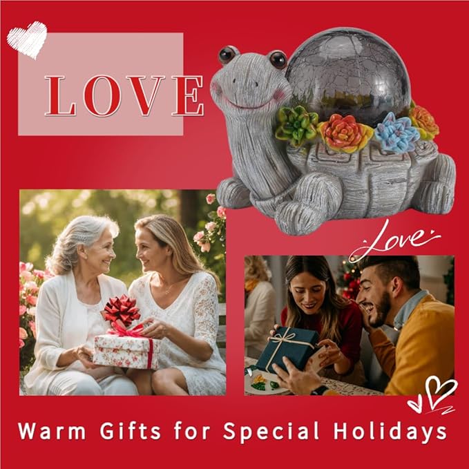 - 【The Best Choice For Gift Giving】The solar garden turtle has a cute and friendly expression, looking like welcoming your guests or enjoying the beautiful scenery, adding a warm and comfortable atmosphere to your home and garden,Make it a unique gardening gift, yard gift, and Housewarming gift. The Perfect Gift for Mothers, Women, Grandmothers, Birthdays, Thanksgiving Day and Christmas Day.