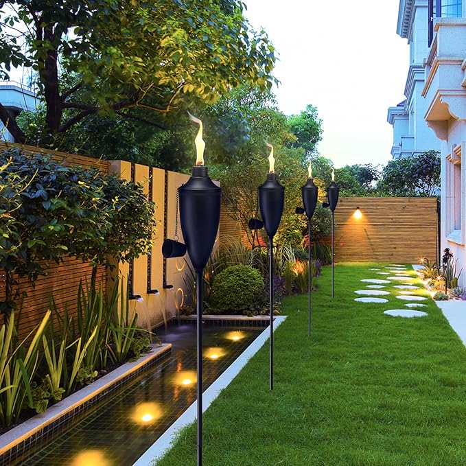- 【Decoration & Entertainment】The outdoor torches ideal for backyard decoration and lawn lighting. It is very suitable for terrace tropical theme parties, beach or jungle theme parties, outdoor concerts and Christmas Party. Make your party romantic and warm.