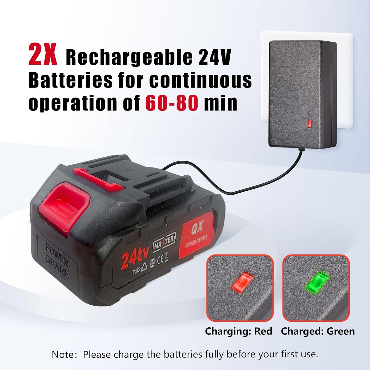 - Complete Set: Includes 1 trimmer, 1 auxiliary handle, 1 set of wheels, 1 safety guard, 3 blade types, 2 x 21V/1500mAh batteries, 1 charger, and 2 wrenches; ready to trim without extra purchases