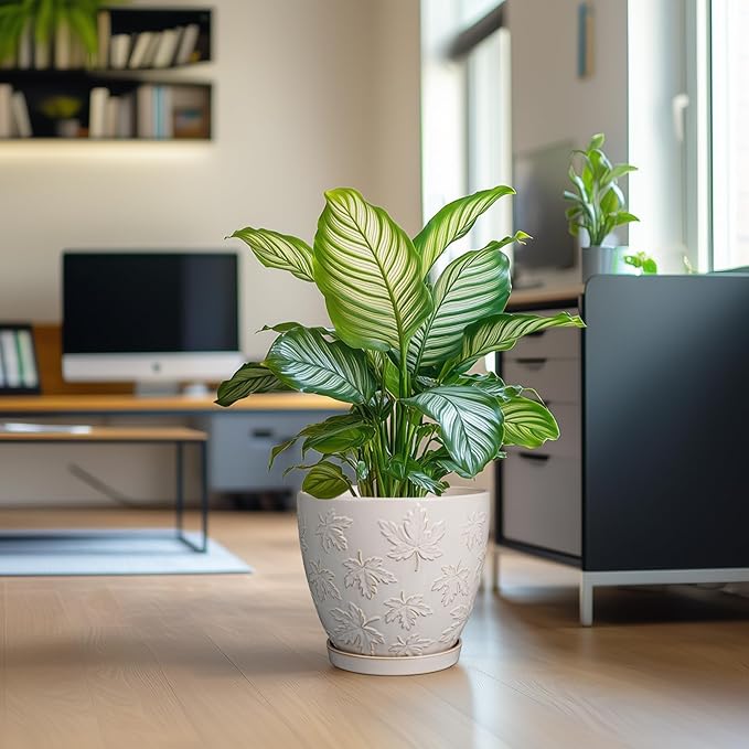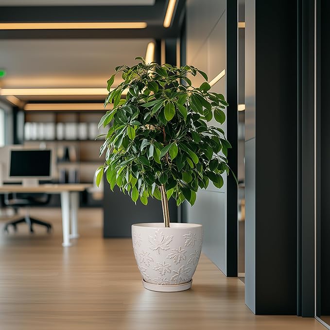 - Stylish Appearance: Our ceramic planter pot has a white main colour, a beautiful embossed maple leaves pattern on the surface, elegant appearance making it ideal for home decor, garden decor and office decor