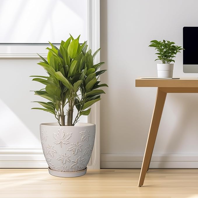 - Stylish Appearance: Our ceramic planter pot has a white main colour, a beautiful embossed maple leaves pattern on the surface, elegant appearance making it ideal for home decor, garden decor and office decor