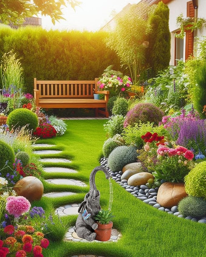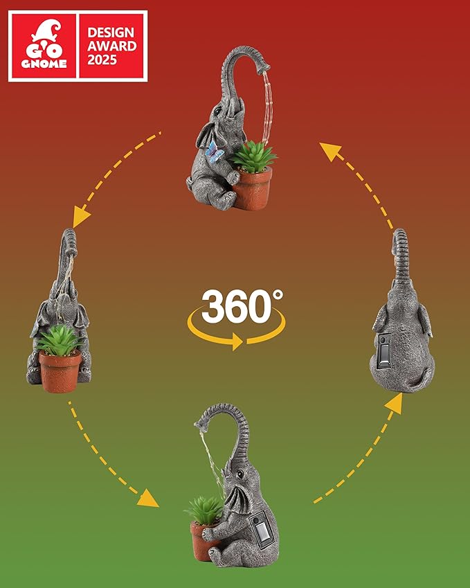 - DECORATIVE DESIGN: Charming elephant statue brings whimsical character to your garden while creating a soothing water feature ambiance
