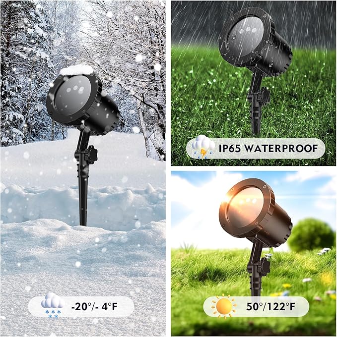 - 【IP65 Waterproof】The Christmas laser lights outdoor is with IP65 waterproof. laser Christmas lights outdoor projector can resist any severe weather such as heavy rain, blizzards, and high temperatures. The working temperature is -20℃-50℃ (-4°F to 122°F). The outdoor laser Christmas projector light is widely used in Halloween, Christmas, Valentine's Day, Thanksgiving, bars, weddings, family gatherings indoor and outdoor decor