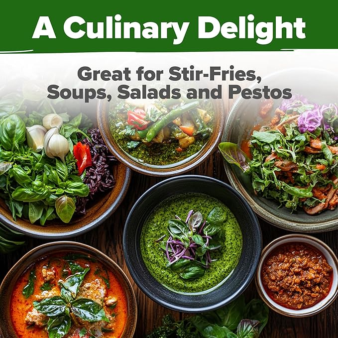 - Fresh and Aromatic Basil for Culinary Excellence β Elevate your cooking with fresh, aromatic Thai basil. These herb seeds provide a consistent supply of flavorful herbs, perfect for soups, salads, and authentic Thai dishes from your basil plant.