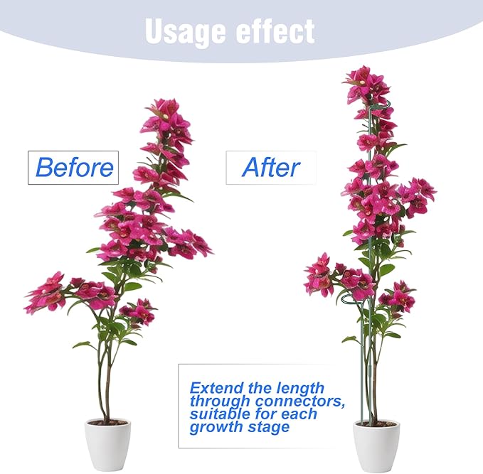 - MULTIFUNCTIONAL DESIGN:Plant support poles can be combined into three sizes, 12 inches for a standalone plant support pole, two sections combined for a 24 inches tall plant support pole, and three sections combined for a 36 inches tall plant support pole. This design allows the plant supports to grow longer as the plant grows, and the plant clips allow you to use them in a variety of situations to create a better look.