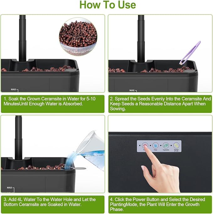 - 【Scientific Growth Conditions】This hydroponic growing system is equipped with adjustable height lamp posts, up to 13.9 inches, providing more than 20% of the lighting area, allowing plants in different growth stages to thrive. With a spacious 4.5 liter water tank, your plants will have plenty of room to spread their roots ,This indoor garden kit is designed to accommodate plants of all sizes and growth habits, ensuring they receive the best possible care.
