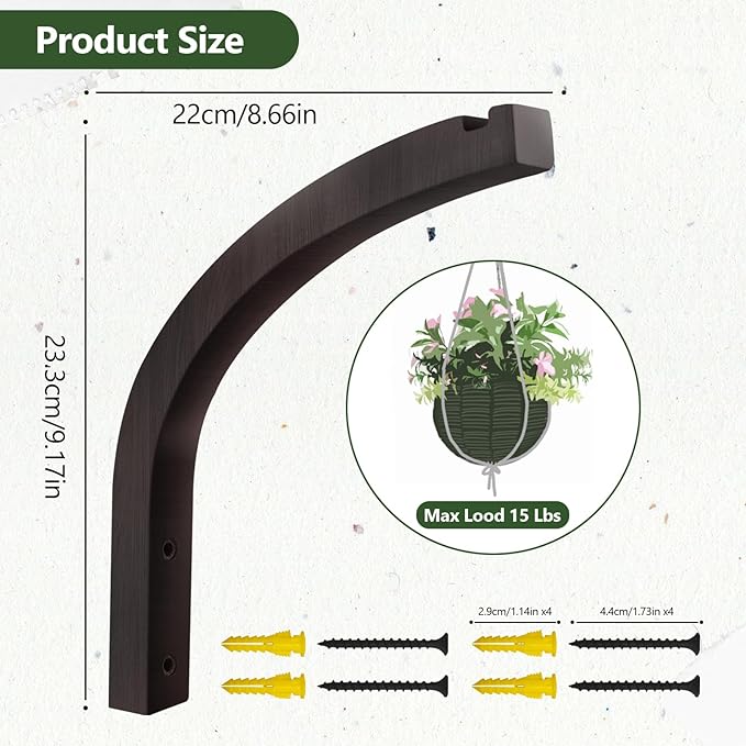 - Easy, Hassle-Free Installation: Each set plant hanger bracket includes all the necessary hardware - 4 screws and 4 drywall anchors. Simply mark your desired placement, drill the holes, insert the anchors, and mount the hooks. The entire process takes just minutes.