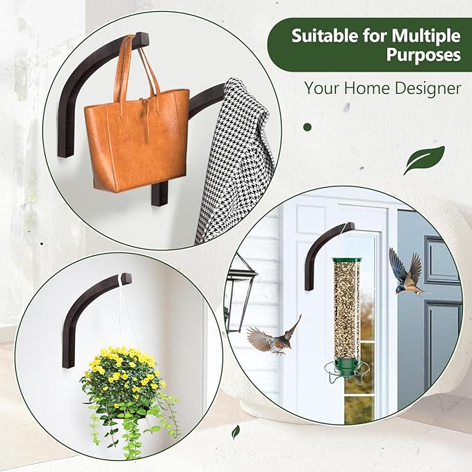 - Space-Saving Solution: You'll receive 2 pieces hanging plant hooks, each measuring approximately 8" long, along with the accessories needed for installation. Maximize your space by moving plants, decorations, and accessories up and off the floor with these functional and attractive plant hanger indoor hooks.