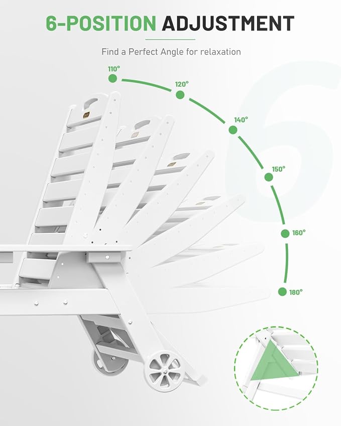 - Premium Suunyn HDPE: The polywood chaise lounge are made from high-density HDPE, which bends slightly under heavy weight or high temperature but returns to its original shape when the weight is removed or the temperature has dropped. This durable material withstands harsh weather and is easy to clean