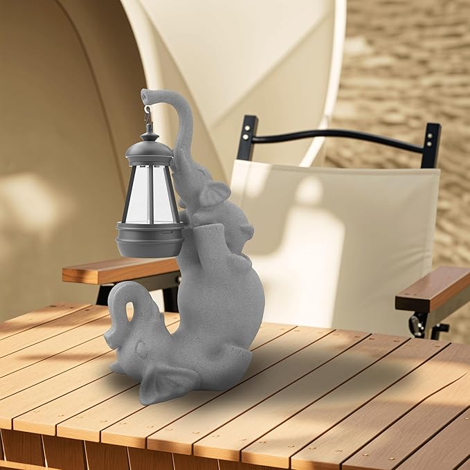 Solar Garden Statue 10 Inch Elephant Decor for Outside Yard Decoration Outdoor Unique Housewarming Gardening Birthday Gifts for Women Grandma