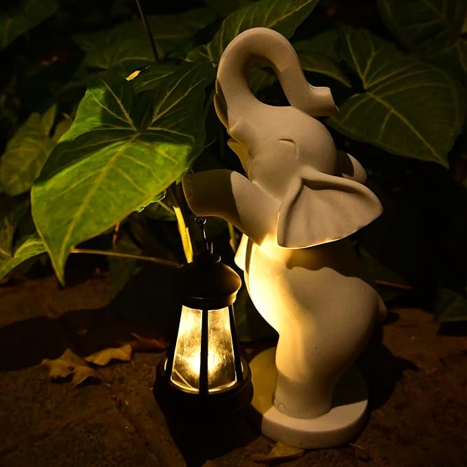 Solar Garden Statue 10 Inch Elephant Decor for Outside Yard Decoration Outdoor Unique Housewarming Gardening Birthday Gifts for Women Grandma
