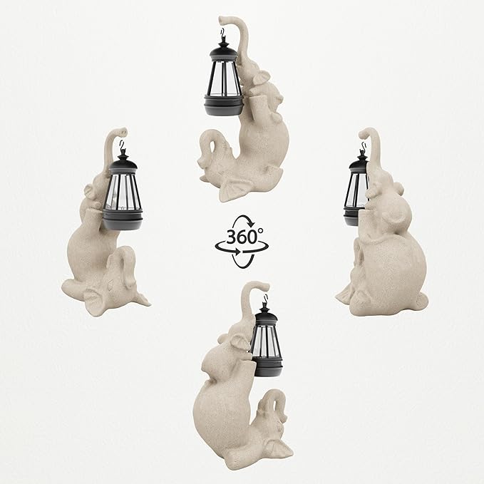 Solar Garden Statue 10 Inch Elephant Decor for Outside Yard Decoration Outdoor Unique Housewarming Gardening Birthday Gifts for Women Grandma