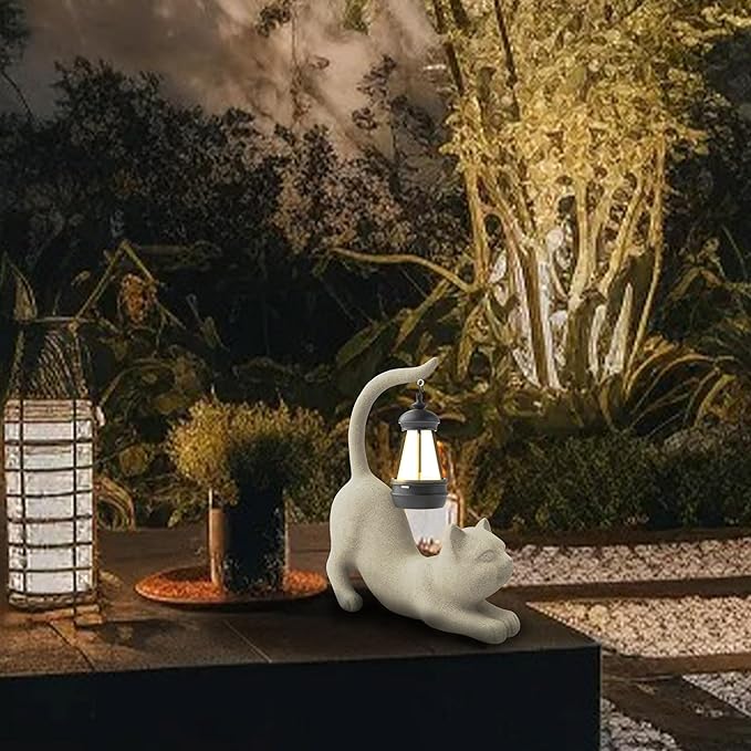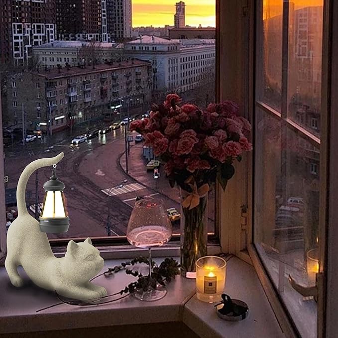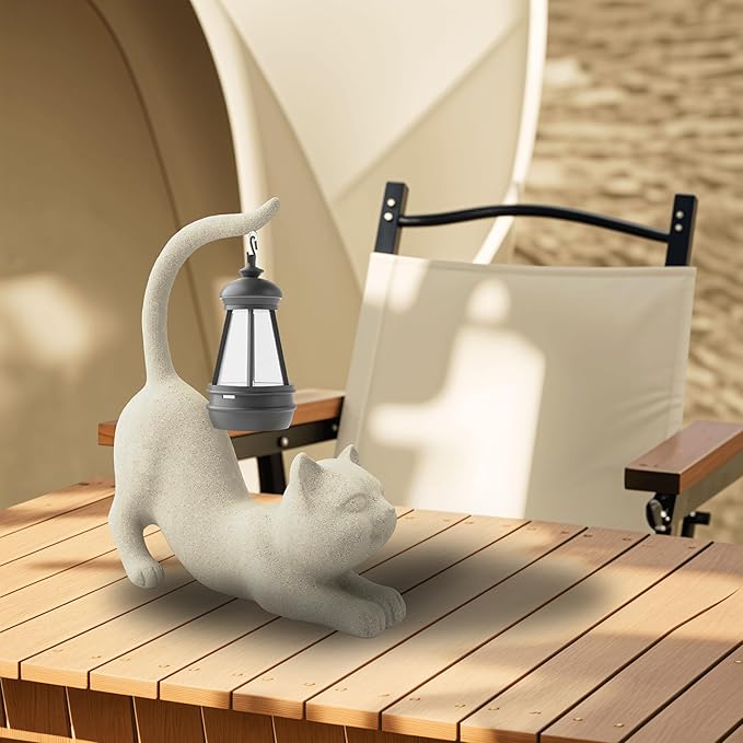 Solar Cat Garden Statue 10 Inch Porch Patio Decor for Outside Yard Decoration Outdoor Unique Housewarming Gardening Birthday Gifts for Cat Lovers Women Grandma