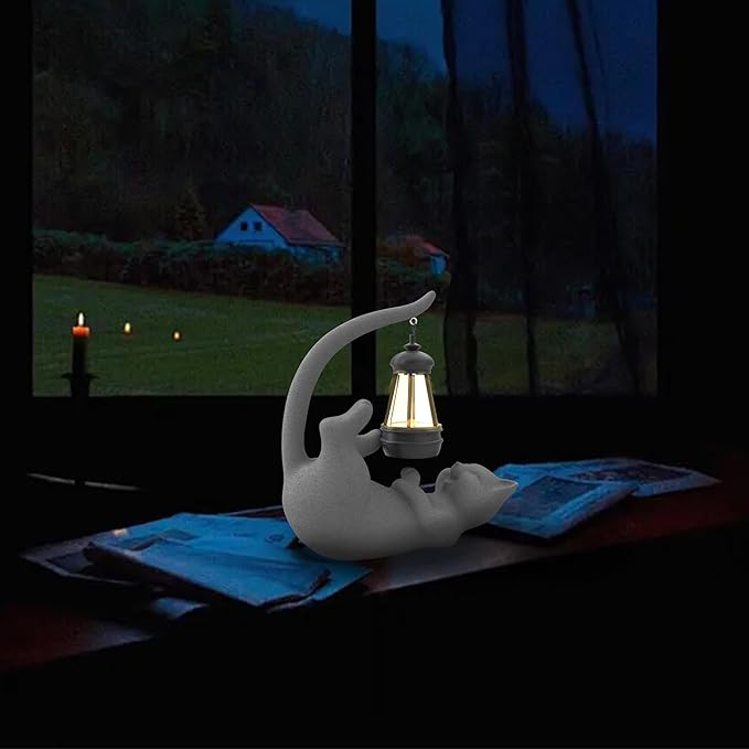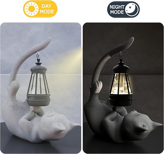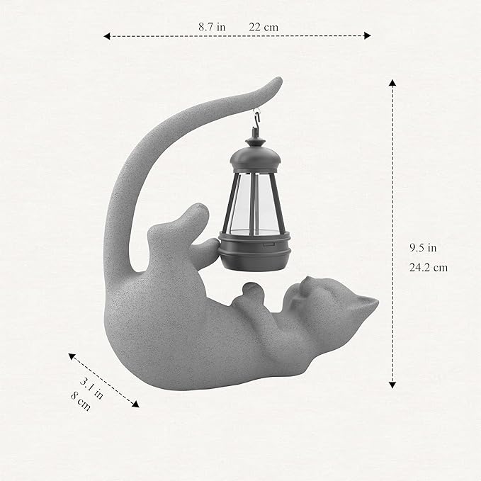 Solar Cat Garden Statue 10 Inch Porch Patio Decor for Outside Yard Decoration Outdoor Unique Housewarming Gardening Birthday Gifts for Cat Lovers Women Grandma
