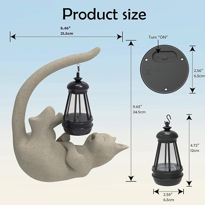 Solar Cat Garden Statue 10 Inch Porch Patio Decor for Outside Yard Decoration Outdoor Unique Housewarming Gardening Birthday Gifts for Cat Lovers Women Grandma