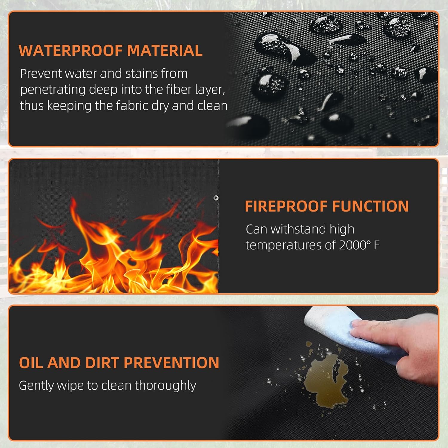 - HEAT RESISTANT: made of fiberglass with silicone coating Features heat-resistant silicone coating on both sides for maximum durability this grill shield withstands temperatures up to 2000°F protecting decks and fences from hot embers and oil