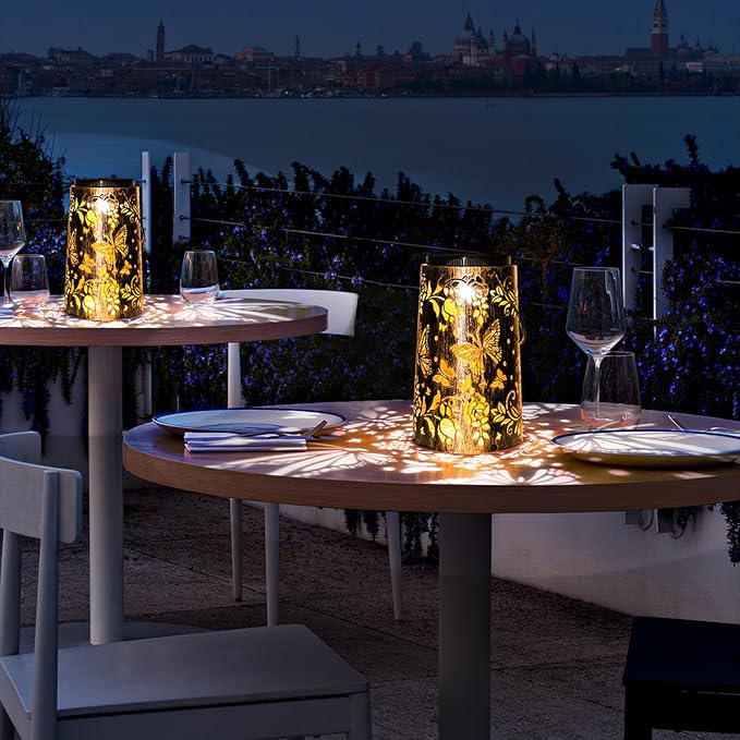 - Butterfly Lantern Gifts :solar lantern design with hollowed-out metal exteriors and butterfly pattern, in darkness, outdoor solar lantern casting a warm light with butterflies pattern, which looks like a butterfly flying symbolizes romance. It is suitable for use as Valentines Day gifts for women, mom, wife, girlfriend or friends