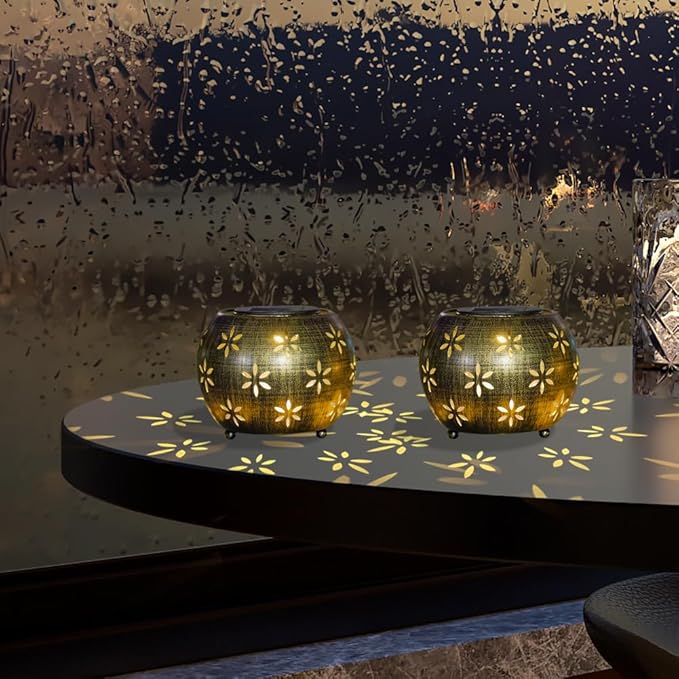 - Exquisite and Compact: This outdoor solar lanterns feature a classic design, paired with vintage bronze and hollowed out patterns, and a combination of two sets to make it more suitable for use in various scenarios