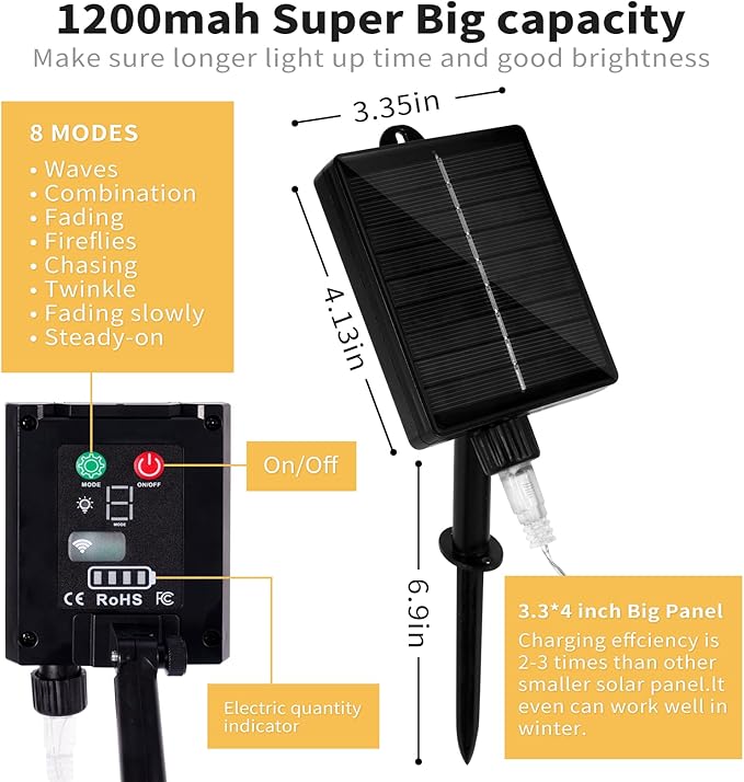 - 8 LIGHTING MODES: Combination, in wave, sequential, slo glo, chasing/flash, slow fade, twinkle/flash, and steady on. Different light's modes bring you different good mood.