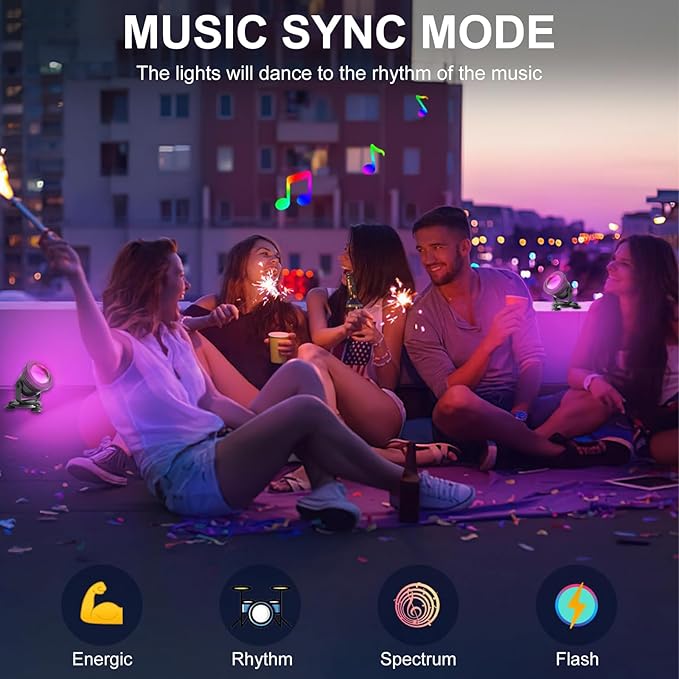 - Music Mode&Timing Settings: The outdoor color changing lights not only provide illumination but also change their flashing rhythm in music mode according to the rhythm of the music. You can set the timing function to automatically turn the lights on or off at specific times for added convenience.
