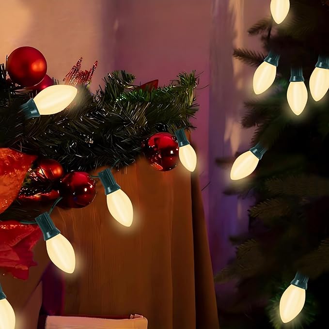 - Classic Christmas Ambiance: Create a festive and bright atmosphere with these 25FT C7 LED clear Christmas lights. The crystal-clear bulbs offer a timeless glow that enhances your holiday decor, making them perfect for trees, garlands, and outdoor displays.