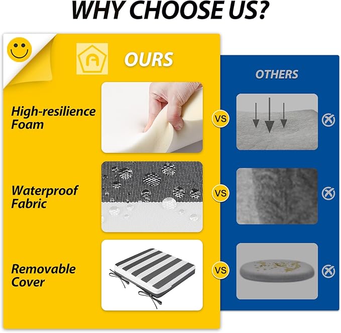 - Wide Use & Tips: These outdoor dining chair cushions fit pools, patios, balconies, decks, backyards, and gazebos. Foam inserts and covers are packed separately in bags and placed in one box—check all parts. Easy assembly required