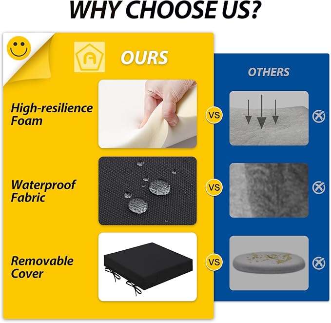 - Wide Use & Tips: These outdoor dining chair cushions fit pools, patios, balconies, decks, backyards, and gazebos. Foam inserts and covers are packed separately in bags and placed in one box—check all parts. Easy assembly required