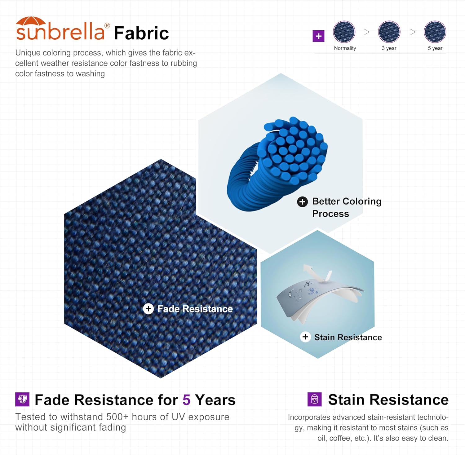 - Superior UV Protection: Featuring industry-leading fabric, this cantilever umbrella blocks over 98% of UV rays to effectively reduce skin cancer risks. 5 years of fade resistance, water and stain resistance.
