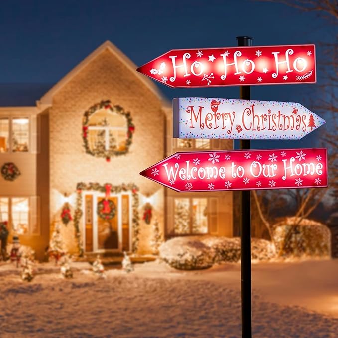 - 【Christmas Decorations & Perfect Gift】- This solar powered Xmas pathway light measures about 39.7 inch. You can place the beautiful sign light along the walkway, yard, garden, lawn to enhance the festive atmosphere of Christmas. It's also the best Christmas gift for lowers, family and friends