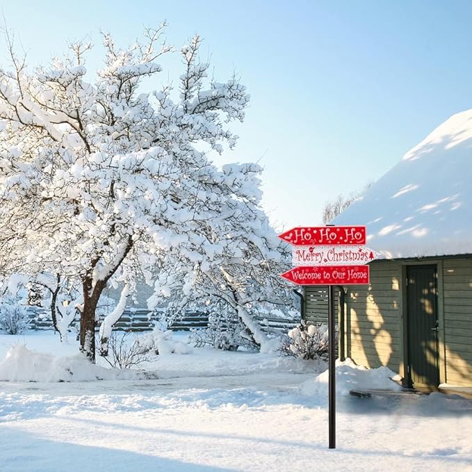 - 【Unique Design & Bright LED】- Our Christmas solar stake light features three ABS plastic signs with 24 white bright led and one metal pole. You can adjust the distance and angle between these signs as you prefer. A perfect pathway marker with full of Christmas atmosphere