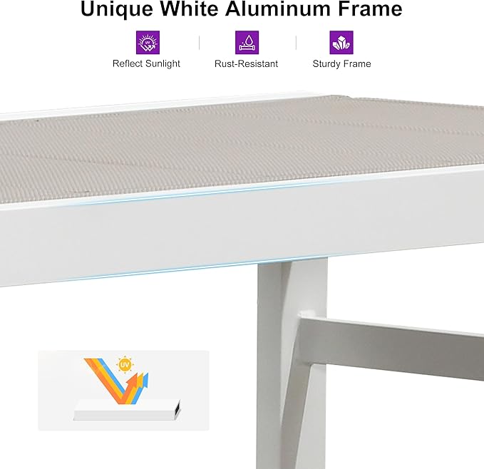 - Rust-Resistant Aluminum Frame: The white-coated aluminum frame reflects sunlight and features a strong, stable, lightweight structure that is not easy to shake.