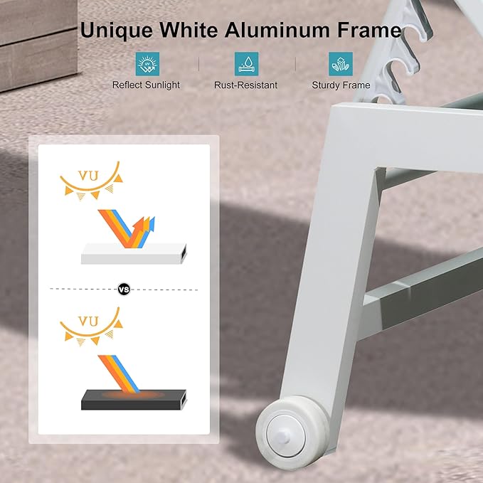 - Rust-Resistant Aluminum Frame: The white-coated aluminum frame reflects sunlight and features a strong, stable, lightweight structure that is not easy to shake.