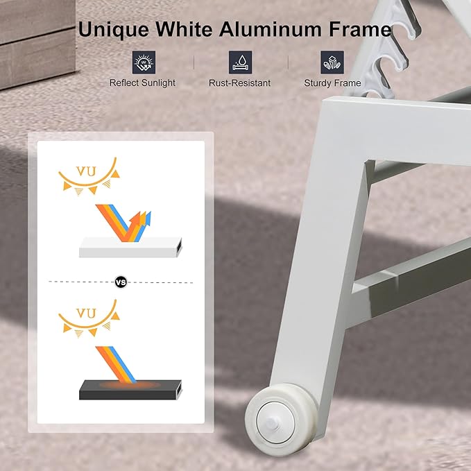 - Rust-Resistant Aluminum Frame: The white-coated aluminum frame reflects sunlight and features a strong, stable, lightweight structure that is not easy to shake.