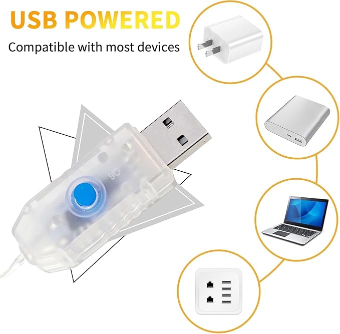 - USB Powered: These fairy string lights can be powered by any USB interface, providing a reliable and portable way to light up your space