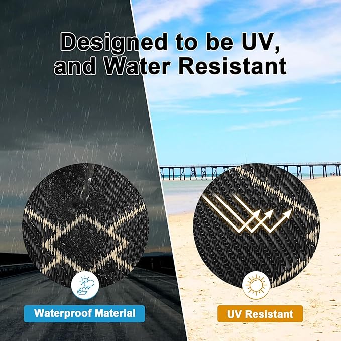 - Premium Material Outdoor Doormat: This reversible outdoor doormats are made from high quality recycled plastic straws and be woven tightly, durable enough, no fade, water resistant. It's soft and comfortable to walk on barefoot.Plus, the high-end UV coating and edge heat treatment technology prevent fading and sun damage without worrying about wear and tear.