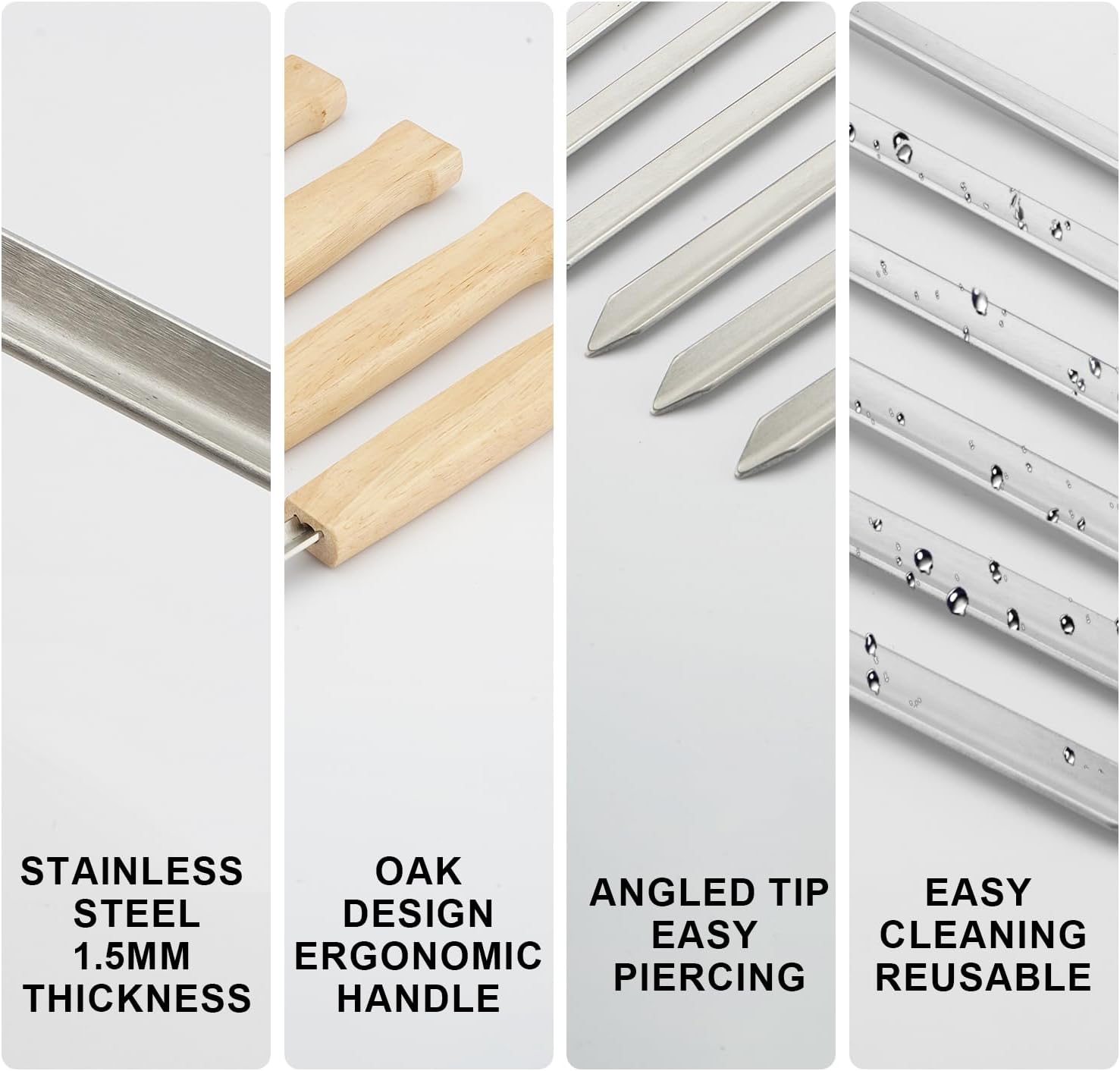 - 【Reusable】The metal skewers may be contaminated with dust during the packaging and transportation. Please clean it and wipe before use. If you have any quality problems, please feel free to contact us.