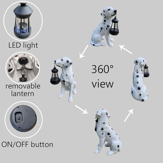 - šCharming Dog Statue for Your Garden: Enhance your outdoor space with our Garden Statues Dog Solar Hanging Light. This lifelike dog statue adds a touch of personality to your garden or yard. With its simulated design and exquisite craftsmanship, it becomes the perfect decorative piece for any garden entrance or courtyard.