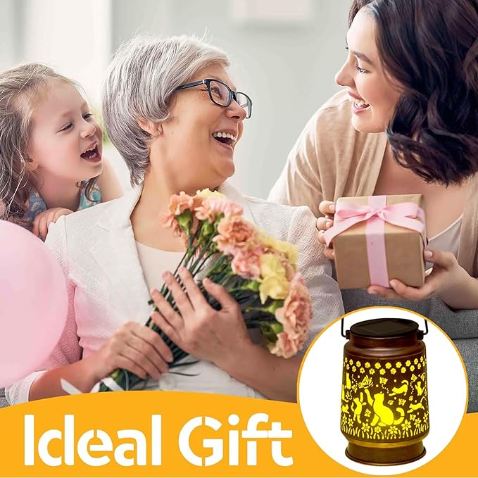 kyoryuger Cat Solar Lanterns Outdoor Cat Lover Gifts for Women Mom Grandma, Cat Lovers Gifts, Birthaday Gifts for Mom Metal Decorative Lanterns for Yard Patio Lawn Solar Garden Decor