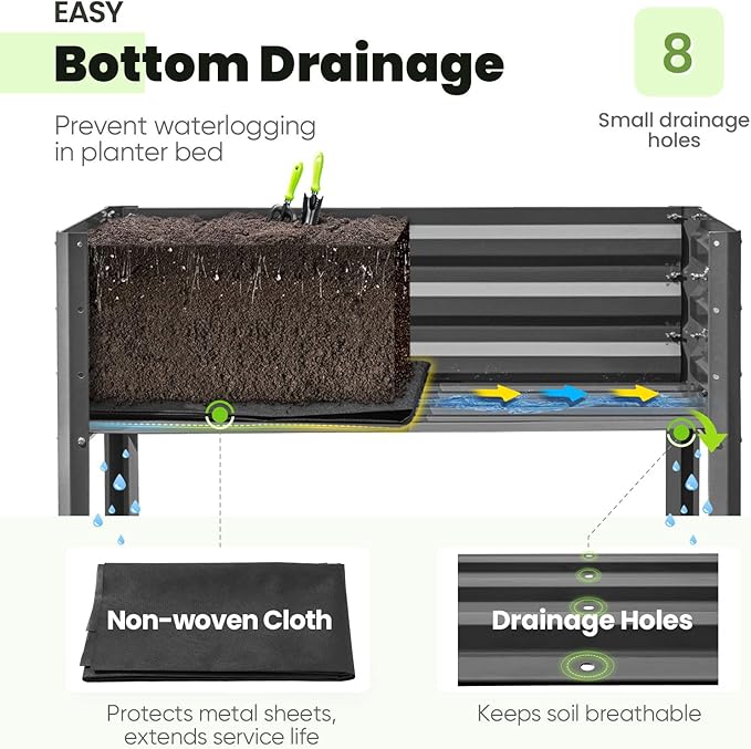- 【Effortless Drainage】Ample drainage holes allow plant roots to breathe and drain properly. Comes with a non-woven fabric liner to ensure efficient drainage while containing soil, enabling worry-free indoor and outdoor use. The elevated garden bed is ideal for garden, backyard, balcony, and deck.