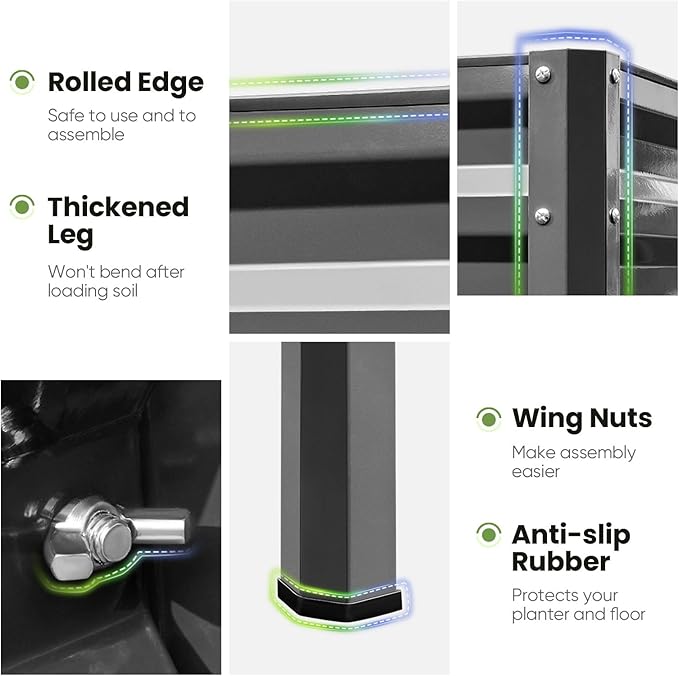 - 【Sturdy & Durable, Capacity: 250 lbs】Our galvanized steel planter raised bed is rust-resistant, sturdy, and can support up to 250 lbs. More durable than wooden raised garden bed kit, it ensures a longer lifespan without the worry of cracking or warping.