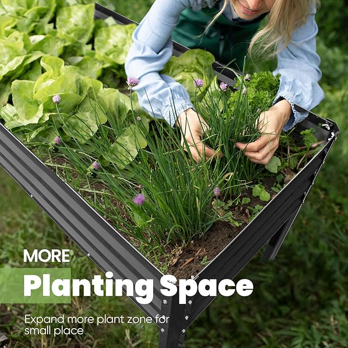 - 【Sturdy & Durable, Capacity: 600 lbs】Our galvanized steel planter raised bed is rust-resistant, sturdy, and can support up to 600 lbs. More durable than wooden raised garden bed kit, it ensures a longer lifespan without the worry of cracking or warping.