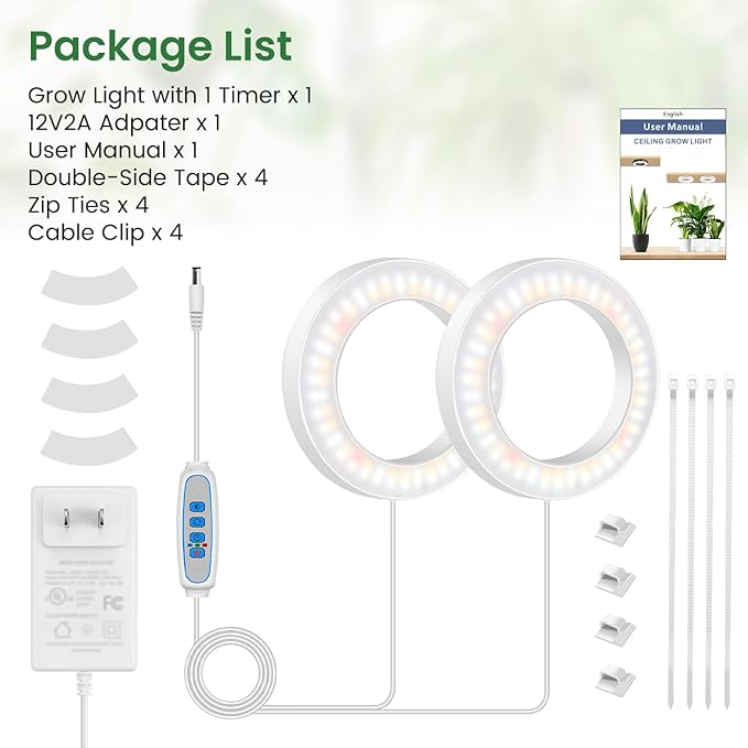 - 【Easy Installation and Wire Clips for Tidy Setup】The package included ties, strong double-sided tape, and wire clips for a secure and tidy setup. The power cord is 118 inches long for easy using in window wells, plant shelves, under cabinets and more. Create a thriving indoor garden with this grow lamp