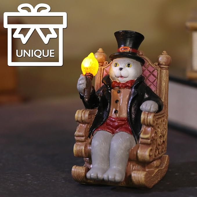 - All-Weather Durability Garden & Outdoor Solar Lights - The Outdoor cat house decor small lamp illuminates at night, seamlessly blending nature and technology to enhance your garden's charml. The solar patio lights are made of sturdy resin material, which is flexible and not easy to damage. IP65 waterproof makes sure the solar statue cat lamp work well even in rainy, snowy and windy days.