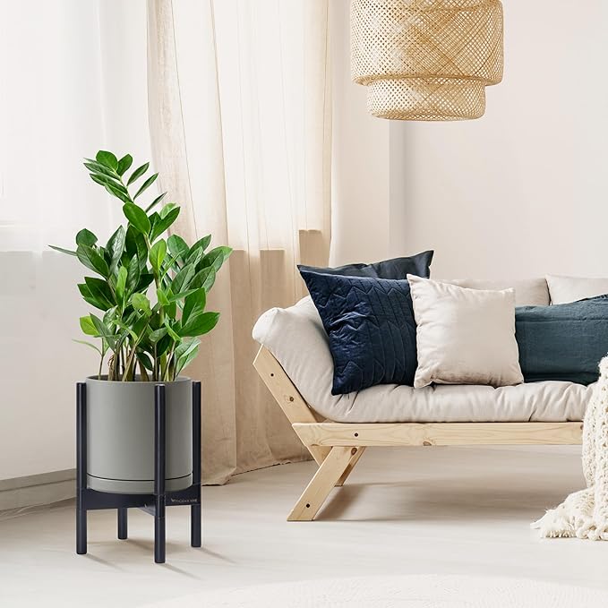 - A Complete Set: Mid-century ceramic planter, combined with a ebony wood stand that match perfectly together and looks great in anywhere.