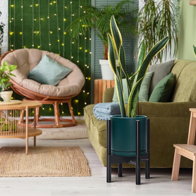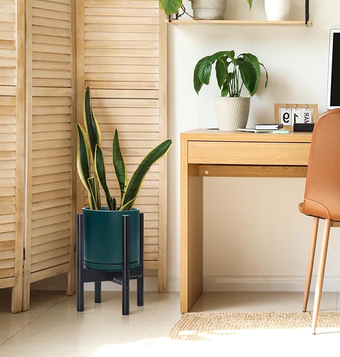 - A Complete Set: Mid-century ceramic planter, combined with a ebony wood stand that match perfectly together and looks great in anywhere.